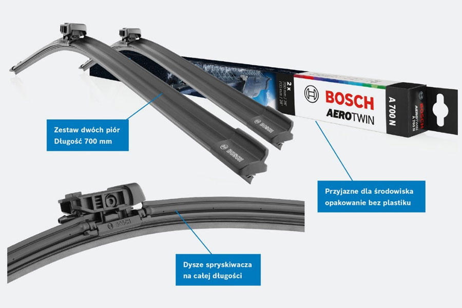Bosch właśnie wprowadził do oferty pióra wycieraczek wykonane w unikatowej technologii Aerotwin J·E·T Blade ze zintegrowanymi dyszami spryskiwacza.